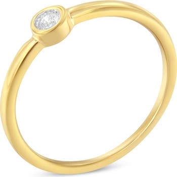 A diamond and yellow gold plated ring. The ring features a central round diamond miracle set in a 14 karat gold plated setting. The diamond weighs .05 carats.