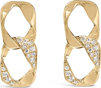 14K Yellow Gold Plated Silver Open Link 1/5 Cttw Diamond Drop Earrings