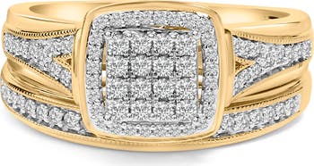 14K Yellow Gold Plated Sterling Silver 1/2 Cttw Diamond Square Cluster Bridal Set