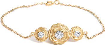 14K Yellow Gold Plated Sterling Silver 1/2 Cttw Lab Grown Diamond Rose Motif Link Bracelet