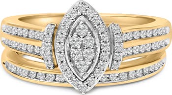 14K Yellow Gold Plated Sterling Silver 1/2 Cttw Marquise Cluster Diamond Bridal Set