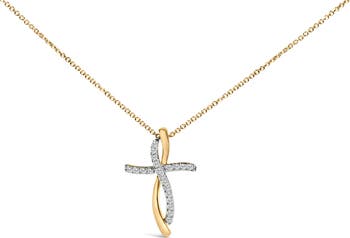 14K Yellow Gold Plated Sterling Silver 1/4 Cttw Diamond Cross Pendant Necklace