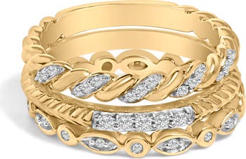 14K Yellow Gold Plated Sterling Silver 1/4 Cttw Diamond Twist Leaf Stackable Ring Set