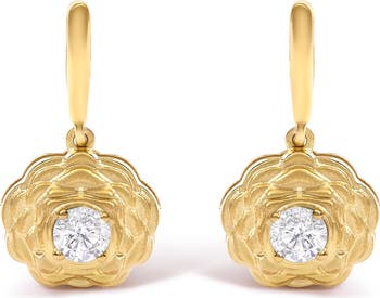 14K Yellow Gold Plated Sterling Silver 5/8 Cttw Lab Grown Diamond Flower Drop Earrings
