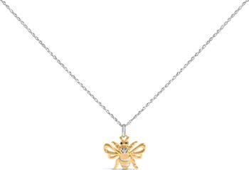 14K Yellow Gold Plated Sterling Silver Diamond Accent Bee Pendant Necklace