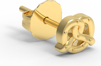 Twisted in all the right ways, this adorable 14K gold pretzel stud is the perfect salty snack addition to your stack. Sold as a single so you can mix and match, we love it in a second or third piercing next to your favorite everyday studs. Sold individually Solid 14K Yellow Gold Handmade in Los Angeles Dimensions: 5mm H × 6mm W