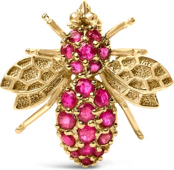 14K Yellow Gold Red Ruby Bee Brooch Pin