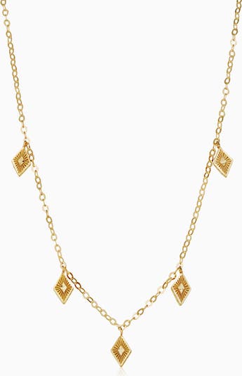 Embrace the allure of handcrafted luxury with the Roma Diamond Station Charm Necklace. Each of the five diamond charms adorning this piece are meticulously diamond-cut by hand, creating a play of light that shines. Adjustable from 16 to 18 inches, it's perfect for layering, offering flexibility in styling.