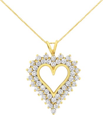 Chic and timeless, this gorgeous heart pendant has an impressive total diamond weight of 4 carats. Natural, sparkling round-cut diamonds dazzle in this 14k yellow gold .925 sterling silver necklace. This is the perfect accessory for a formal night out as this piece will illuminate any outfit you put on. This heart cluster necklace hangs from a gold 18" box chain.