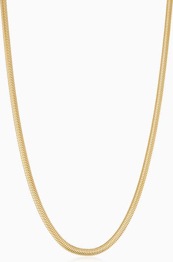 Sleek, slinky, and irresistibly smooth—The Snake Charmer Choker glides across the skin with effortless fluidity and shine. Crafted in 14k solid gold, this flexible herringbone chain exudes quiet luxury and everyday elegance, designed to wear solo or stack with charm.