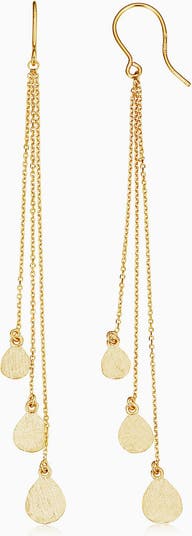 Our Tears of Joy Drop Earrings tell a story of elegance and power. Three solid gold teardrops dangle from long chains at varying lengths for added shine and movement with every turn of your head.