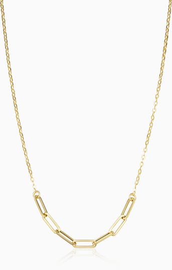 The Venice Center Cut Necklace is the perfect blend of modern taste and classic elegance. Seven large, paperclip-style links create a bold centerpiece on this otherwise minimalist chain.