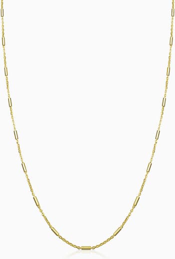 Make a sparkling statement in our Vicenza Rolo Chain, named for the Italian city where it was made. Petite gold tubes sit stationed along the delicate Rolo link chain for a uniquely textured look.