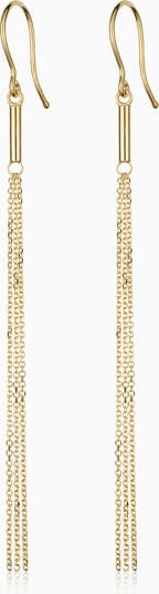 Make a sparkling statement in our Vicenza Tassel Drop Earrings, named for the Italian city where they were made. Shimmering gold tassels swing from solid gold cylinders to create elegant movement. Pair them with our matching Vicenza Drop Necklace to complete the look.