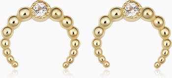 Fierce double-horn shapes are softened by the incredible shine of solid gold in our Wall Street Beaded Studs. With the added sparkle of white topaz gemstones at each horn's center, there's no denying your gorgeous power.