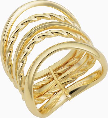 It's all about the wave! Add intrigue to any look with our Wavy Stack Ring. This solid gold beauty is full of modern charm, with five alternating polished and twisted rings held together by a solid gold band.
