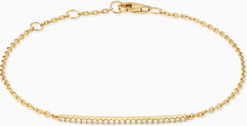 The Brooklyn Bar Diamond Bracelet This stunning 14k gold bar bracelet is set with shimmering natural diamonds, offering a sleek and modern look for any occasion. Designed for versatility, the chain is easily adjustable from 6 to 7 inches to ensure a perfect, comfortable fit on your wrist.