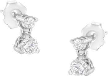 Haus of Brilliance 14KT White Gold 1/2 Ct Double Diamond Dangle Stud Earrings, Main, color, White