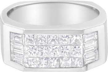 Be the talk of any event by showing off this dramatic cluster ring. Defining stylishness, the ring is composed of 14 karats white gold. The embellishment with shimmering princess cut diamonds from the midst makes it look luxurious. Not only this, the decoration of sides with the studded glittering baguette cut diamonds imparts a touch of sophistication.