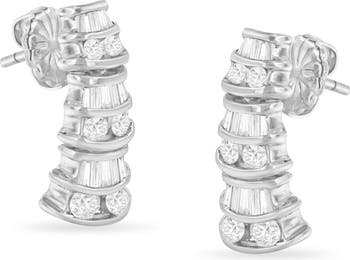 Unveil opulence and timeless elegance with these exquisitely crafted earrings draped in 14K white gold. Each jewel glistens with a harmonious symphony of 7/8 carat total weight natural diamonds, showcasing a unique blend of round brilliant and baguette cuts. Arranged in an alluring multi-row design, the diamonds cascade delicately, capturing and reflecting light with every subtle movement, embodying both grace and architectural finesse. The H-I color and SI2-I1 clarity of each gem sparkle with a clear, mesmerizing luster, secured by the robust white gold settings. These dazzling dangle earrings, complete with a secure back post, promise comfort paired with sheer glamour, perfect for elevating evening attire or adding a touch of luxury to everyday wear.