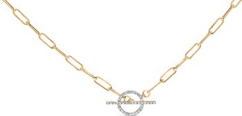 14KT Yellow Gold 1/4 Cttw Diamond Toggle Clasp Paperclip Link Necklace