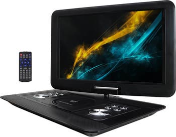 Enjoy your movies and other digital files on the go with this portable DVD player. Easily connect it to a television or take it with you wherever you wish thanks to its long lasting rechargeable battery. The TFT high resolution screen swivels 270° and tilts 180° for perfect enjoyment at any angle. The wide 15.4 inch display ensures clear and beautiful images. It supports several formats so you can enjoy a plethora of different files, whether on a flash drive, memory card or disc. Enjoy Your Entertainment Longer! This unit offers you a rechargeable battery so you don't have to be tied down to a charging cable. Charge On the Go! You don't have to worry about leaving entertainment behind when you can easily take it along for the ride! With the included Car Adapter, you can enjoy your favorite movies while you are out and about. Find Your Own Angle! This convenient Portable DVD player offers you a 90 Degree rotation to the left and a 180 Degree rotation the right, allowing you to fully turn your screen, and even close the unit with the screen pointing out. Play It Your Way! Choose the right input for you: SD / USB / Earphones Input / AV Input/ AV Output/DC Input This unit makes a wonderful gift for your friends and family, coworkers, and anyone with kids who appreciates the power of entertainment! Whether you enjoy this unit in your man cave, on a camping trip, or even during a picnic, you can't go wrong with the reliability and quality of Trexonic. Item Dimensions: 16.00" x 11.00" x 12.00" Item Weight: 4.55lbs