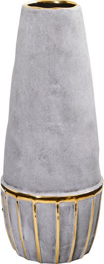 Love your new plant but not the planter? It's your lucky day with this Stoneware Oval Vase with gold trimmings (Set of 1). DIY your own faux-bulous arrangement easily, effortlessly and confidently by adding your own finishing touches. If you're into Hollywood glam or mid-century modern, you'll love this ceramic vase's gold trimmings against the stoneware base. Standing 15" high, you can set in a tabletop against a walled mirror for a chic look. No drainage holes.