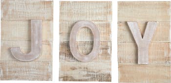 Enhance those bare corners and walls with this Farmhouse Rustic "JOY" Wall Art Décor. Inspired by rustic design, spread good vibes throughout the home. Crafted from mango wood, feel confident in the quality and craftsmanship of this piece. With a height of 15", hang safely in any space.