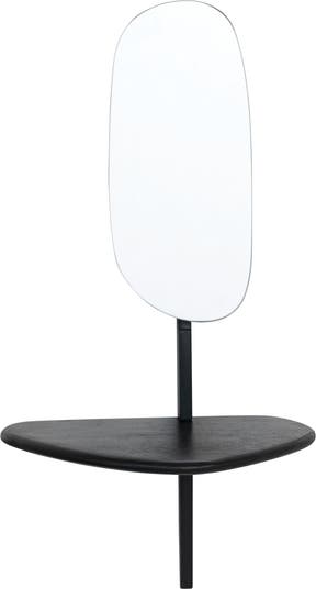 15 Inches Mango Wood and Metal Organic Shaped Wall Mirror with Shelf