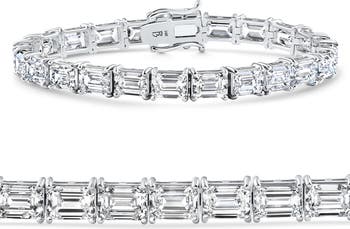 16 Ct Emerald Cut Diamond East West Tennis Bracelet 14k Gold Lab Grown 7"