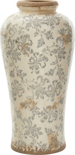 16-in Tuscan Ceramic Floral Scroll Urn Vase