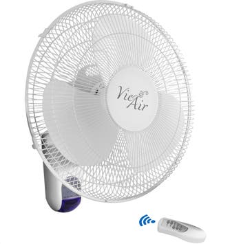 The Vie Air 16 Inch 3 Speed Plastic Wall Fan with Remote Control in White is both reliable and easy to operate so that you can spend more time enjoying the fresh air and less time setting up for it. With simple and convenient remote operation this wall mountable fan can be turned on and controlled from the comfort of your couch or bed. The ventilator's quiet yet powerful air flow does a great job of cooling down rooms and garages. This Fan features 3 Variable Settings so that you can control the speed and intensity of the air flow in your space. In addition, this fan features a tilting head, which greatly improves the ability to control air flow within a room, and will be a satisfying feature for anyone in a Gym or workout space. Whether you need to cool down while you sleep, or cool off during exercise, this fan is strong enough to handle the heat. Item Dimensions: 16.00" x 17.00" x 4.00" Item Weight: 7.00lbs