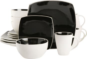 Set the table with the solid style of the Gibson Elite Soho Lounge 16 Piece Stoneware Dinnerware Set in Black/White. Every piece features a matte white exterior with a bold glossy black accent. The black tint compliments the color of any meal. Its stoneware construction is dishwasher safe and microwave safe for every day convenience. Show off at dinner parties, brighten up your home made dishes, or enjoy your favorite foods with the family.