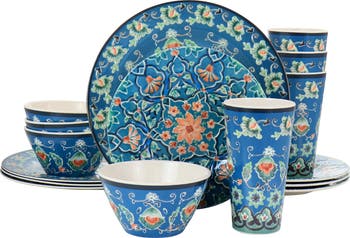 The Gibson Home Tacoma Melamine Dinnerware Set is perfect for both indoor and outdoor dining. Constructed of melamine, this dinnerware set is durable and lightweight, making it perfect for big family gatherings with children and outdoor events. This set features an allover beautiful floral design with a hand painted affect. Give off summer/spring vibes with this 16 piece dinnerware set that includes service for four people. Top-rack dishwasher safe, do not microwave.