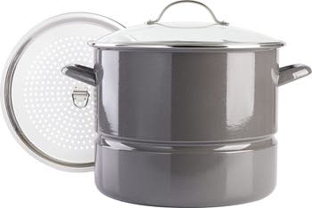 Kenmore 16 Quart Enamel On Steel Stock Pot With Steamer and Lid, Main, color, Grey