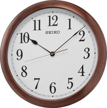 The 16" Arabic Numbered Round Wooden Finish Wall Clock by Seiko brings warmth and sophistication to the home as well as office space. Classically designed, it features a brown case with a wooden grain finish and a quiet sweep second hand. Powered by 1 AA battery (included). Overall dimensions: 16 X 16 X 1.9 inches. All Seiko clocks are equipped with quartz movement making it the most accurate at time keeping.