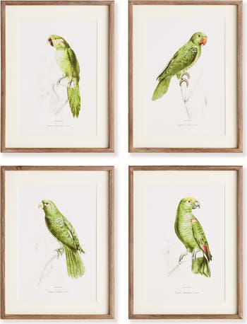 17.75"W x 1"D x 23.5"H Parrot Illustrations In Green Framed Wall Art Set of 4
