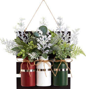 17-in Holiday Assorted Christmas Pine Hanging Three Piece Mason Jar Artificial Arrangement Wall Art Décor