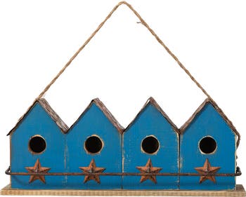 This oversized townhouse-inspired design is crafted of durable solid wood with handcrafted washed finish and distressed details, featuring a textured metal roof, 3D stars and a detachable perch that brings a touch of vintage charm and aesthetics. It can not only be able to provide a safe and sweet home for your small feathered friends but also create a delightful and inviting atmosphere to highlight your garden, patio, backyard or any other outdoor space!