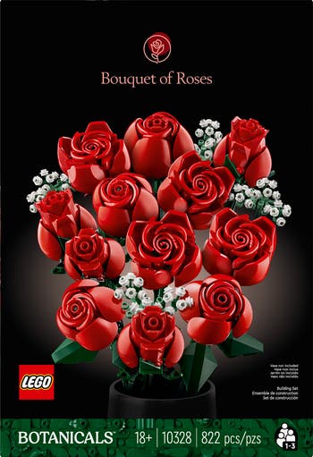 Take time out with the LEGO® Botanicals Bouquet of Roses (10328) home decor building set for adults. Indulge in a mindful building project or treat a loved one to this timeless buildable bouquet–a perfect gift idea for Valentine’s Day or any other special occasion. A joy to build, this LEGO bouquet depicts a dozen red roses, including four in full bloom, four blooming and four in bud, with long green stems for vase display, plus four sprigs of baby’s breath with small white flowers. Easy to assemble, the bouquet makes an elegant display for any space and is combinable with other sets from the LEGO Botanical Collection.