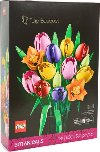 Take time out with the LEGO® Botanicals Tulip Bouquet home decor building set for adults. Indulge in a mindful building project or treat a loved one to this timeless buildable bouquet–a perfect gift idea for Valentine’s Day, Mother's Day, birthdays, housewarmings and other special occasions. A joy to build, this LEGO bouquet depicts tulips in various stages of bloom, with green stems and leaves for vase display. Easy to assemble, the bouquet makes an elegant display for any space and is combinable with other sets from the LEGO Botanical Collection.