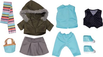 Style Girls 18" Doll Outfits are all about fashion and fun! You can change up your Style Girls look with fun, bright outfits. Be sure to dress your 18" doll with this stylish layered outfit. It includes a short sleeved cropped dark green jacket with multicolored scarf, black vest with grey skirt and matching teal cropped leggings with matching purse and teal sneakers. Its definitely an outfit to start a fashion trend. You will be ready to go out and have some wonderful fun with your friends and your Style Girls doll in her new outfit! These outfits fit most 18" dolls. *Doll Accessory - Doll Not Included.