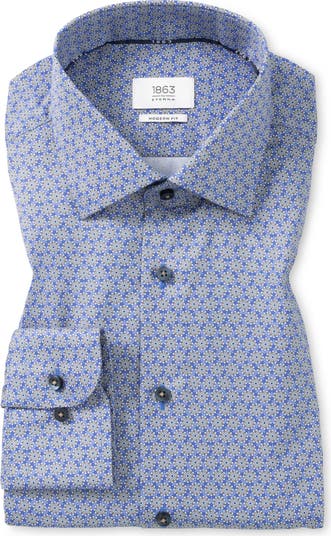 Modern Fit Floral Medallion Non-Iron Cotton Twill Dress Shirt