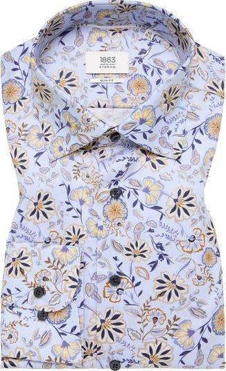 Slim Fit Floral Non-Iron Cotton Twill Dress Shirt