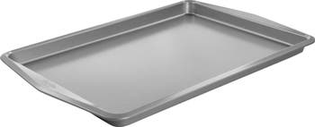 The Martha Stewart 18in Cookie Sheet is constructed with durable carbon steel that resists warping and heats evenly. Long lasting nonstick interior for easy food release and quick clean up. Medium grey color absorbs heat and promotes even browning. Wide handles and rim provide a comfortable grip. Item Dimensions: 18.00" x 13.00" x 1.00" Item Weight: 2.30lbs
