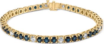 18K Gold 1 1/5 Cttw Diamond & Blue Sapphire Tennis Bracelet