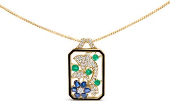 18K Gold 2 1/3 Cttw Diamond Sapphire & Emerald Dog Tag Pendant Necklace & Brooch