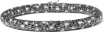 This luxury bracelet is breathtaking with over 840 total diamonds in a stunning array of colors to enrich your style and pair perfectly with any ensemble. Crafted of genuine 18k white gold, this link bracelet is covered in round heat-treated black diamonds and round white diamonds throughout the entire surface area, all of which are nestled in prong settings. This luxurious bracelet will slither around your wrist like a glistening serpent; when the occasion calls for a grand entrance, make yours in this ravishing diamond bracelet. This statement bracelet fastens with a very secure box clasp. It is 7 inches long, best for small and medium sized wrists. The allover diamonds total 20 cttw and are of an approximate Black and G-H Color with SI1-SI2 Clarity.