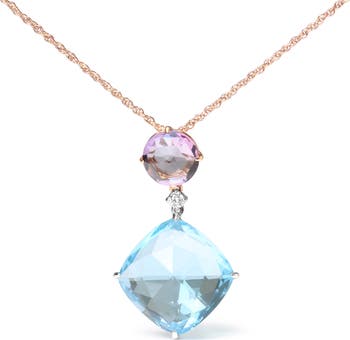 18K Gold Diamond Accent Amethyst Topaz Dangle Pendant Necklace