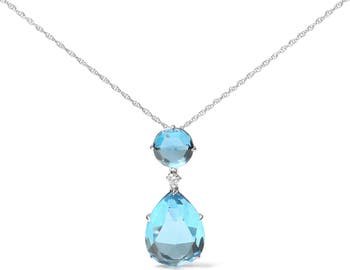 18K Gold Diamond Accent Topaz and Topaz Drop Pendant Necklace